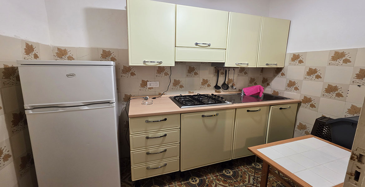 Questo appartamento in vendita a Canneto Lipari è arredato e accessoriato con aria condizionata, cucina 4 fuochi, frigo con freezer, predisposizione per lavatrice.