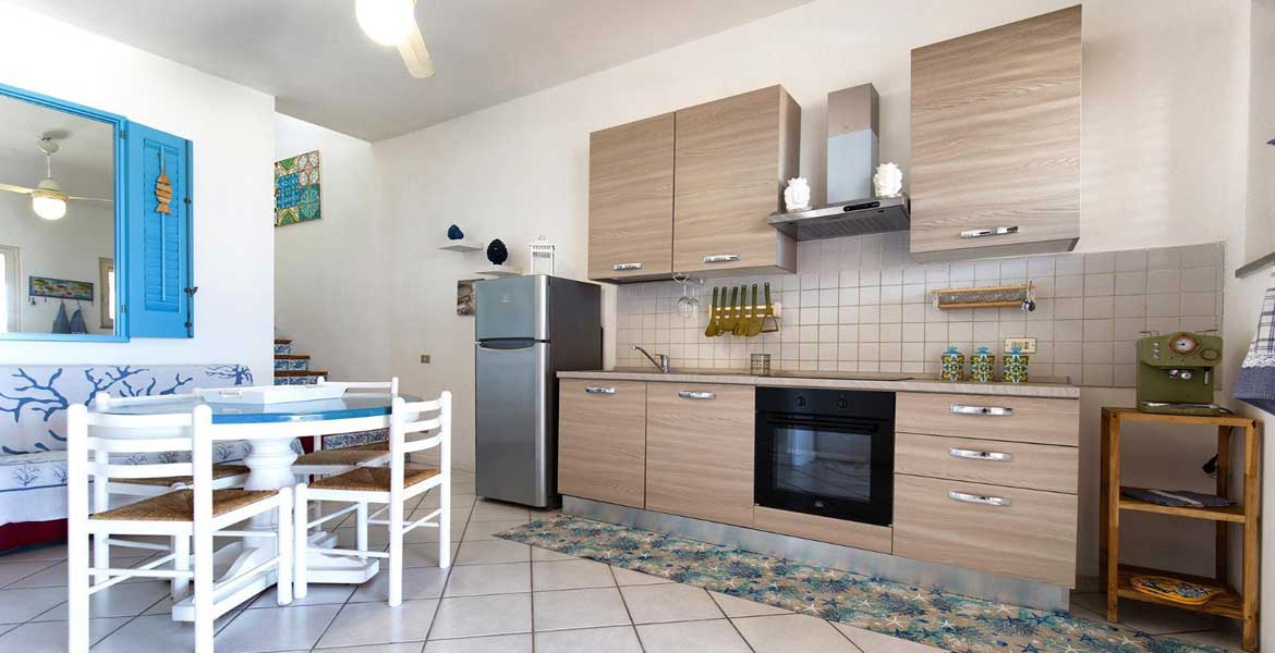 La casa ben arredata e accessoriata, dotata di climatizzatori nelle due camere da letto e ventilatore a soffitto in cucina.