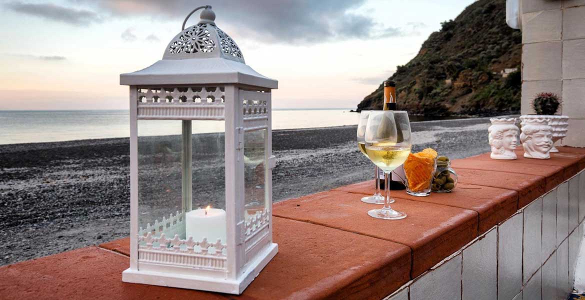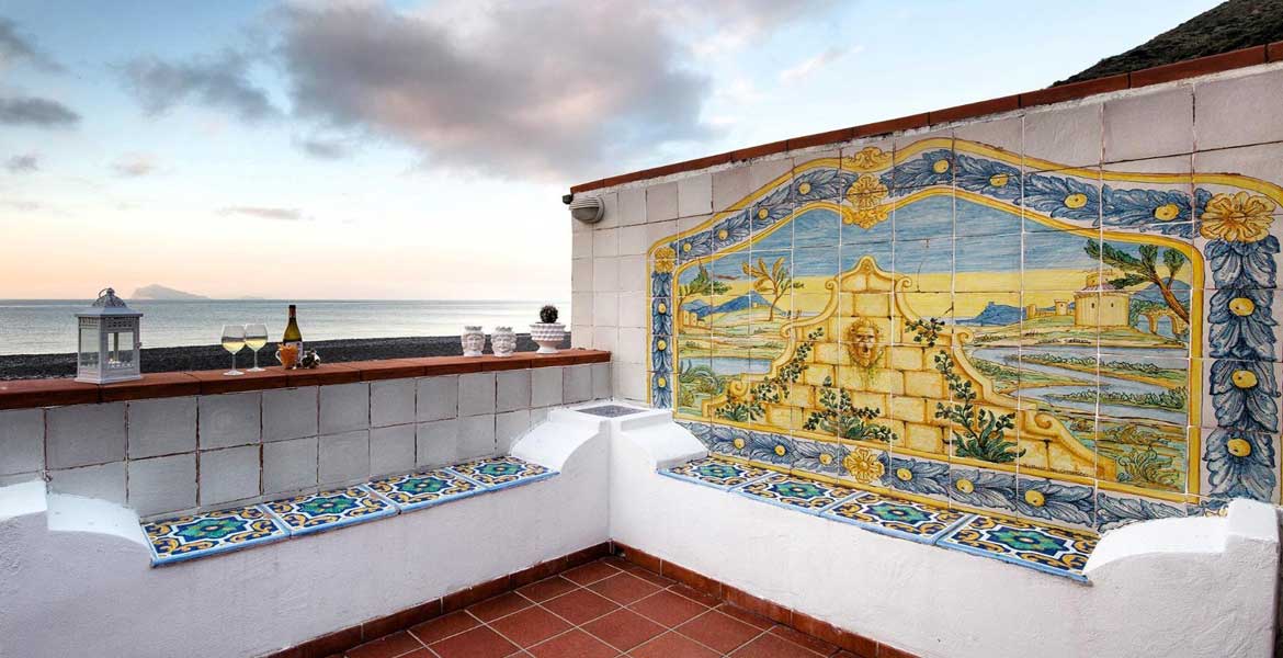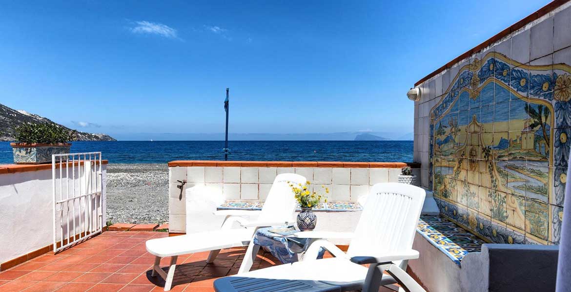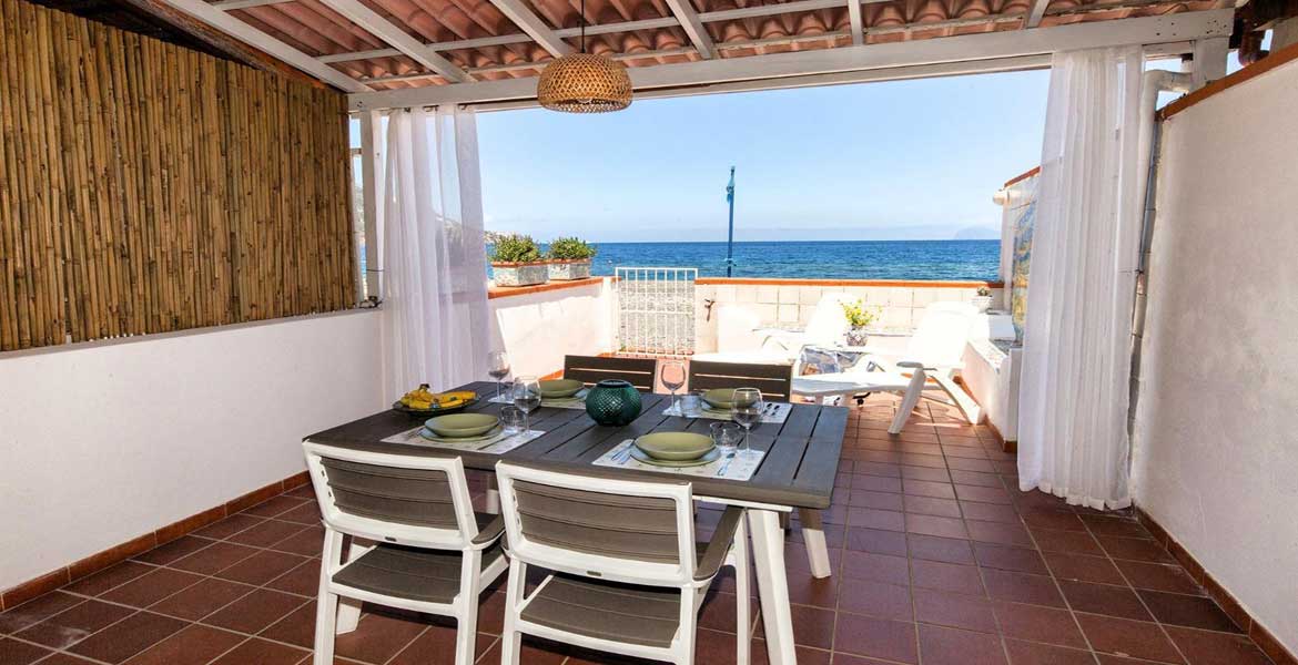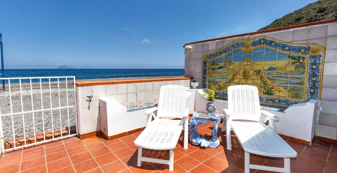 L’accesso alla casa è dalla spiaggia, la terrazza ha panorama sul mare e sulla baia di Canneto, e sulle Isole di Panarea e Stromboli.