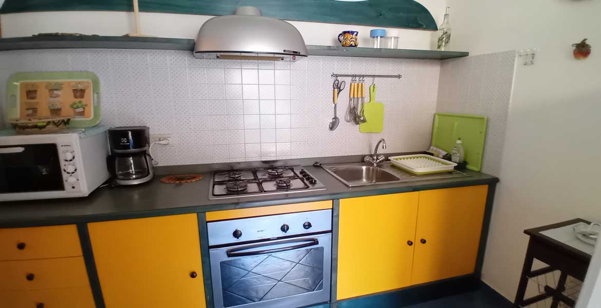 Dotazioni: Fornetto, frigo con freezer, cucina 4 fuochi, lavatrice, asse e ferro da stiro, phon, 3 ventilatori da tavolo, Tv, aria condizionata come indicato.