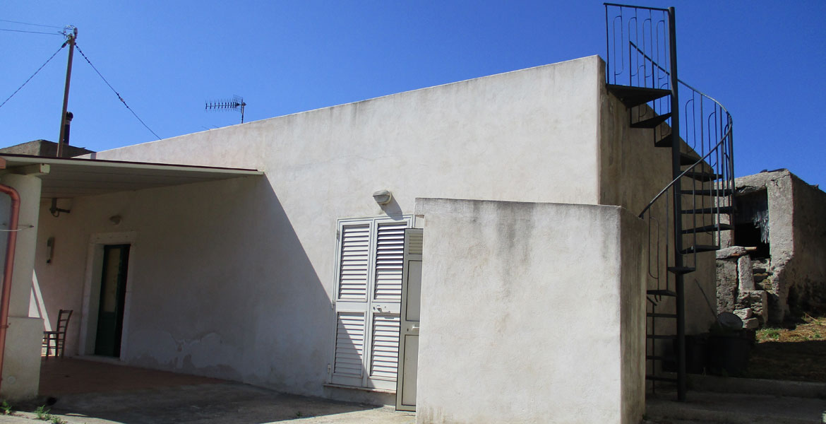 Quattro vani con Corridoio e Bagno, Terrazzo patio, Rudere adiacente di tre vani (antico palmento e “mannare”), 2 proprie cisterne, Terreno adiacente e Cancello indipendente d’ingresso
