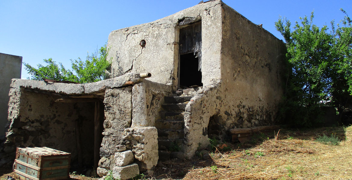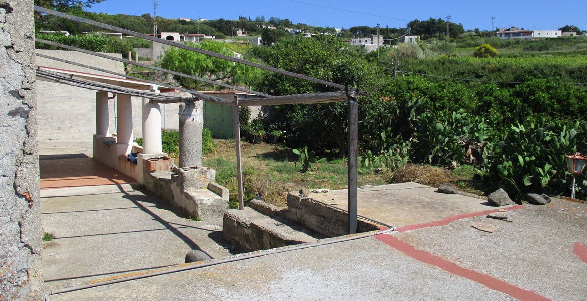 Tale proprietà è costituita da più corpi di fabbrica in tipico stile eoliano, in parte abitabili e in parte da ristrutturare, per una superficie coperta di mq  300 (escluse unità collabenti) più terrazze mq 65 e terreni circostanti di mq 2480.